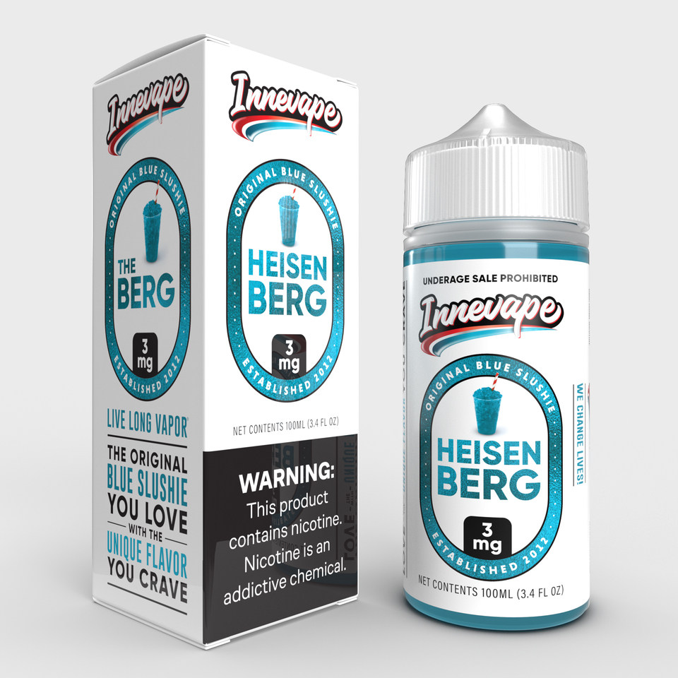 El líquido Heisenberg The Berg de InneVape es uno de los más reconocidos entre el mundo vapero. Cuenta con un sabor a tarta de arándanos, algunos lo describen como frutos azules o un granizado azul. Existe en 4 versiones sabor original, menthol, berry y finalmente ice. También hay otras personas que describen su sabor como frambuesa azul o incluso helado azul para la versión mentolada.